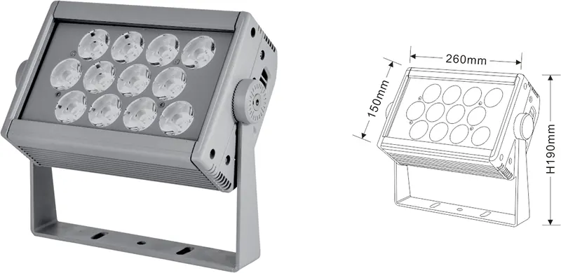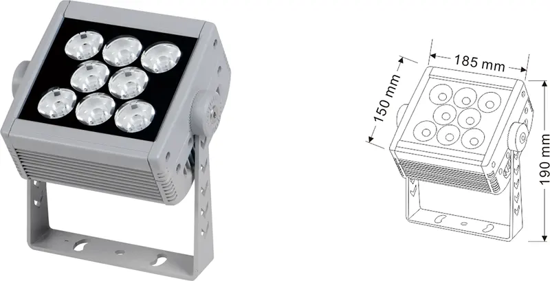 | LED sahə işığı | Kons-TGD04-1 | 185 * 150 * H190 | 8 * 3W | Material: Alüminium + temperli şüşə Mötərizədə: Tənzimlənən IP: IP67 Rəng temperaturu isteğe bağlıdır: 3000k / 4000K / 6500K RGB / DMX512 Rgbw / dmx512 İnşaat fasad rəngi ilə uyğunlaşmaq üçün özelleştirilebilir şərti boz |